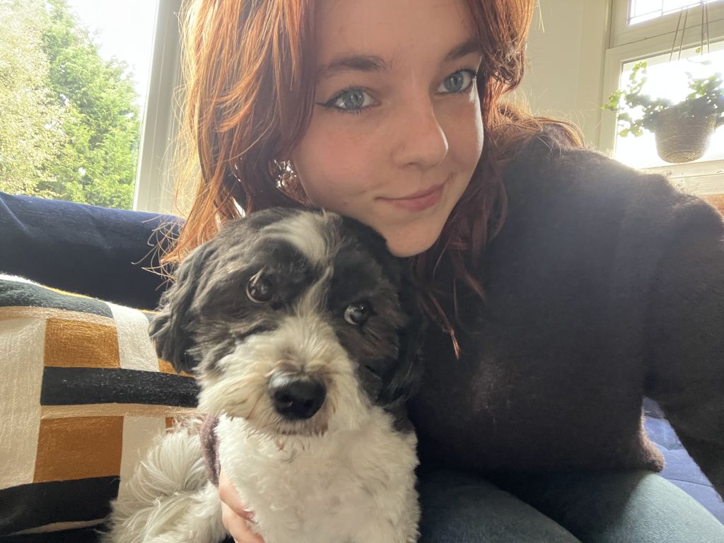 Op de foto sta ik met mijn eigen hondje :)