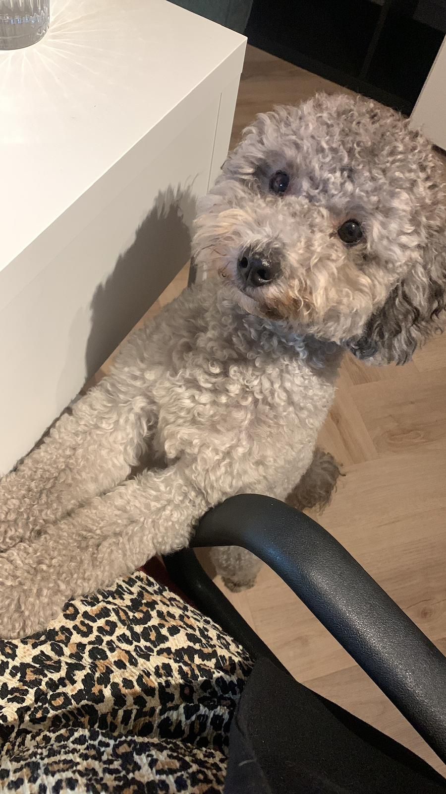 Ted is een grijze dwergpoedel van 2,5 jaar. Hij is nog speels en daardoor ook wel een boefje, maar vooral een grote knuffelkont en ontzettend lief. Hij ligt het liefst dicht bij je, op de bank of in de zon, en vindt wandelen of op visite gaan erg gezellig. Alleen zijn is geen probleem zolang het niet hele werkdagen zijn.