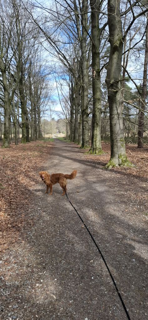 Vanwege zn leeftijd is hij nog snel afgeleid en kan onverwachts nog wel een ruk aan de riem geven.