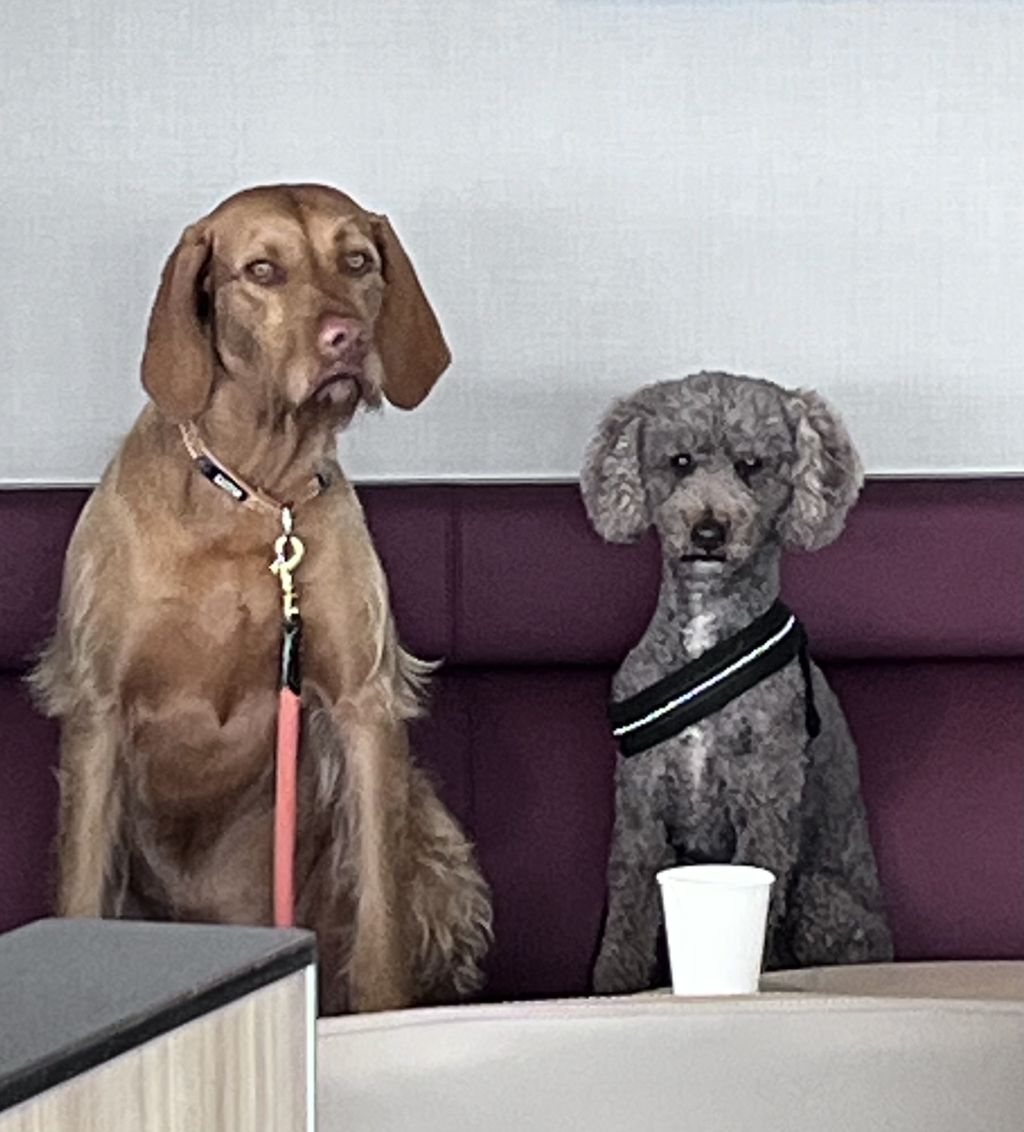Toby and Oadie (my wire haired Vizsla) love to walk and sniff, play and chase the ball (Oadie). They receive three walks a day, one for an hour or more, one 30-45 mins and 15 mins at end of day. Oadie is more obedient than Toby. She is 5years old and well trained. Toby will run after another dog on heat as he is not castrated. He needs to be on a leash near a road. Oadie is much more energetic than Toby.