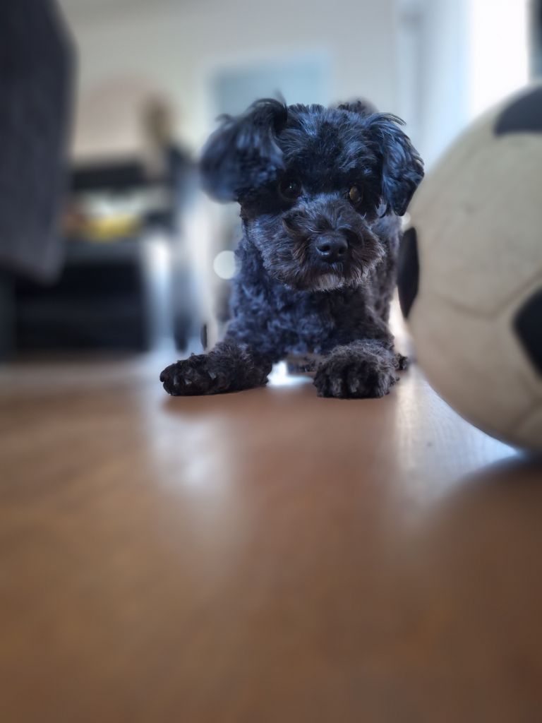 Hi, ik ben Woezel! Ongeveer 3 jaar oud. Ik hou van spelen met de bal, korte wandelingen en lange wandelingen. Ik ga goed om met kinderen, maar ik hou niet zo van andere honden en katten.