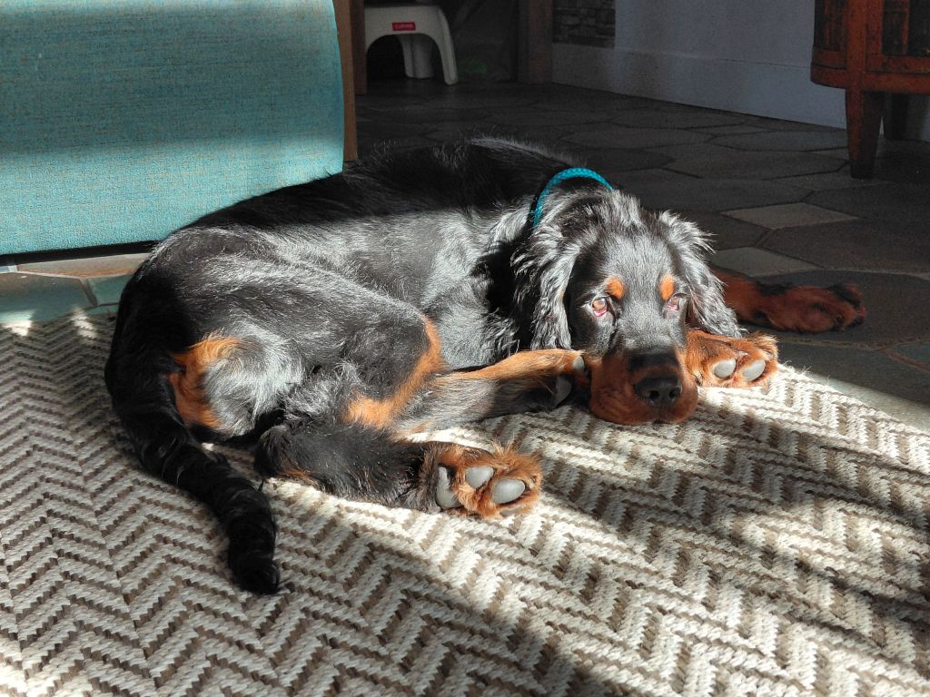 Ik zoek voor ad hoc momenten, soms een paar uur in het weekend, soms 's avonds een paar uurtjes, een lieve oppas voor hem. Hij is nog te jong om lang alleen te zijn. In de bench bij ons thuis laat ik hem maximaal 2 uurtjes en dat gaat prima. Hij is heel leergierig. Maar daarnaast is het gewoon een echte pup, die consequent moet worden behandeld. Ik zoek iemand met eventueel oudere kinderen. We hebben zelf kleinkinderen, maar dat is voor iedereen best nog wel spannend. Hij springt (nog) en heeft scherpe tandjes. Ik heb wel geleerd dat, als je zelf rustig op dingen reageert, hij ook snel die rust overneemt. Het liefst iemand met ervaring en die weet hoe het is om met een pup om te gaan. De Gordon Setter staat erom bekend dat hij met een rustige aanpak het beste gedijt. Maar dat neemt niet weg dat ik hem regelmatig mentaal achter het behang heb geplakt! Maar het is een schat...