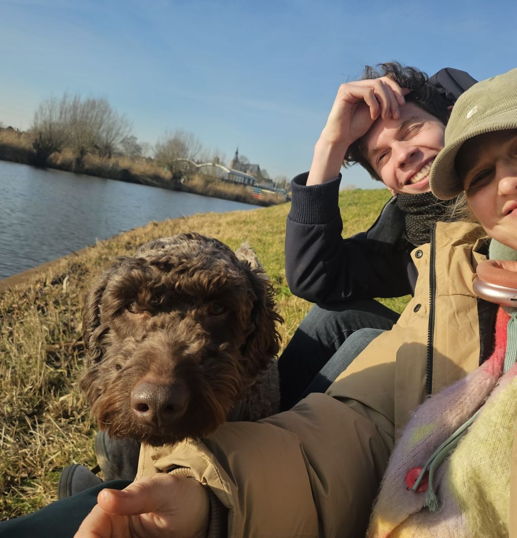 hoi, dit is zuzu, een hele lieve zeer aanhankelijke best wel af en toe drukke doodle. :) haha. hij is super lief, super aanhankelijk, super gevoelig, maar ook juist daardoor soms best wel druk buiten. ik wandel dan ook eigenlijk het liefst zonder riem buiten met hem op stukken waar hij gewoon lekker rond los kan lopen.... in de bossen of bij de uiterwaarden..... hij houdt er heel erg van om letterlijk de hele tijd bij je te liggen, op schoot of in bed. :) deze hond is eigenlijk van m'n broertje en ik pas nu even op hem, omdat hij veel aan. studie is op dit moment, en ik zoek eigenlijk iemand die het leuk zou vinden om een maatje er bij te hebben ..... de maanden maand april en mei ben ik zelf druk, dus als iemand in die tijd hem bijvoorbeeld in huis zou willen nemen, dat zou wel heel erg leuk voor hem zijn en fijn. of gedeeltes er van door de weeks! hij kan goed met Andere honden en houdt van spelen maar in het begin wel altijd even wennen en aftasten, en katten niet ;)